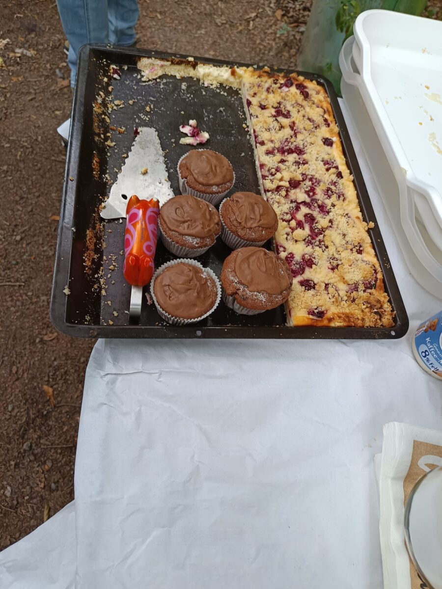 Nach dem abwechslungsreichen Stationslauf gab es an der Burg kalte Getränke und ein leckeres Buffet. Wild vom Grill und eine Vielzahl an leckeren Salaten, Dips und anderen Köstlichkeiten. Wie immer, wenn jeder etwas mitbringt, wollte man alles probieren, war aber eigentlich nach dem ersten Durchgang schon papp satt.