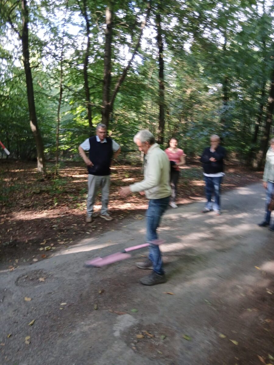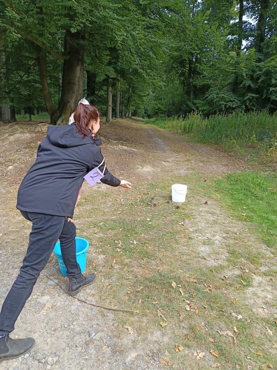 Zweite Station: Tannenzapfenweitwurf – Ein bisschen Geschicklichkeit war gefragt, als es darum ging, Tannenzapfen in einen Eimer zu werfen. Leichter gesagt als getan.