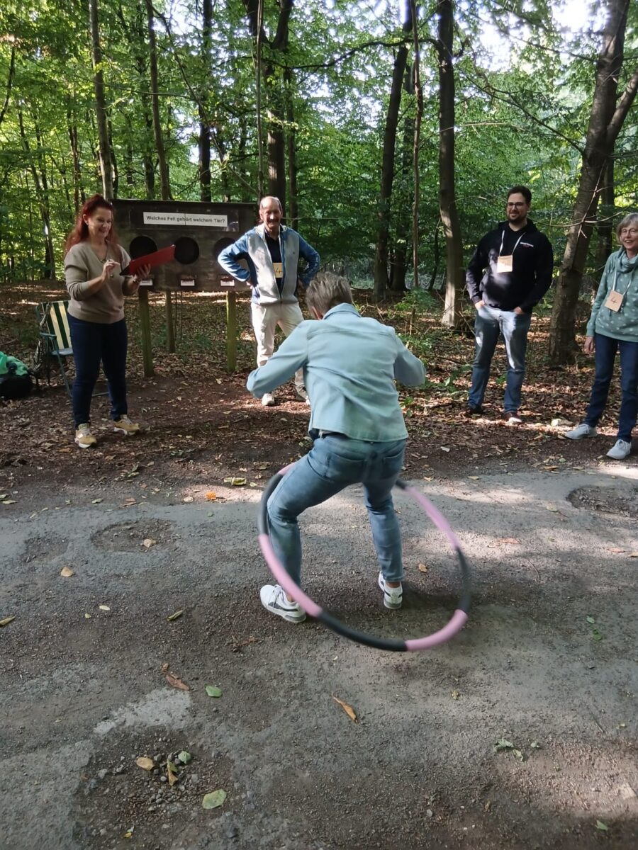 Vierte Station: Hula-Hoop – Zum Abschluss wurde es noch einmal sportlich. Mit dem Hula-Hoop-Reifen galt es, so lange wie möglich zu kreisen – für den ein oder anderen gar nicht so einfach, aber für alle ein spaßiger Abschluss.