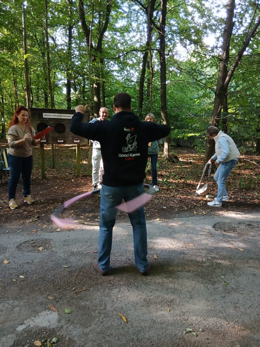 Erste Station: Das Quiz – Hier war Wissen gefragt! Jedes Teammitglied konnte sein Allgemeinwissen zum Thema Wald unter Beweis stellen, wobei gut geraten genauso viel wert war, wie gewusst.